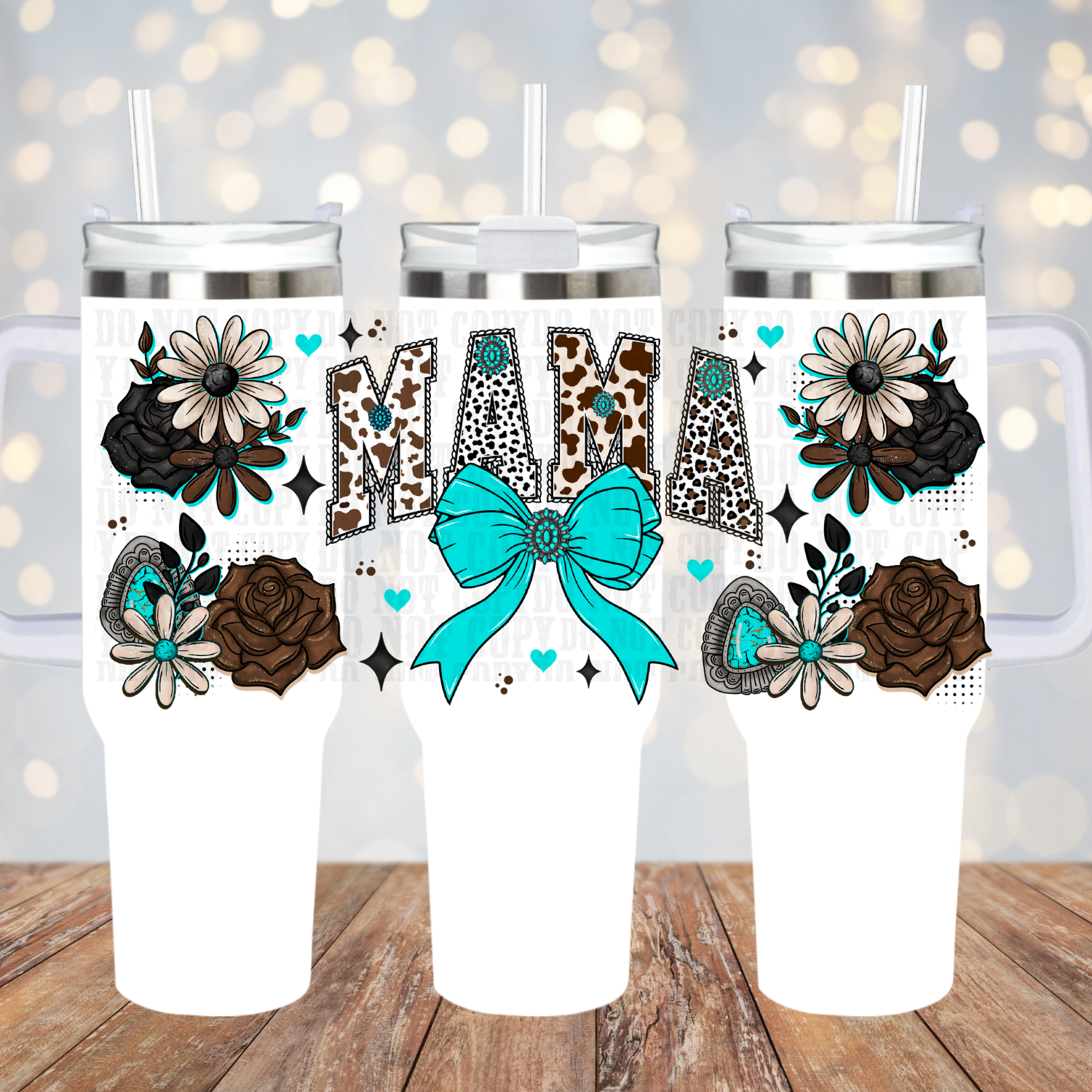 40oz COQUETTE TEAL MAMA UV DTF CUP WRAP