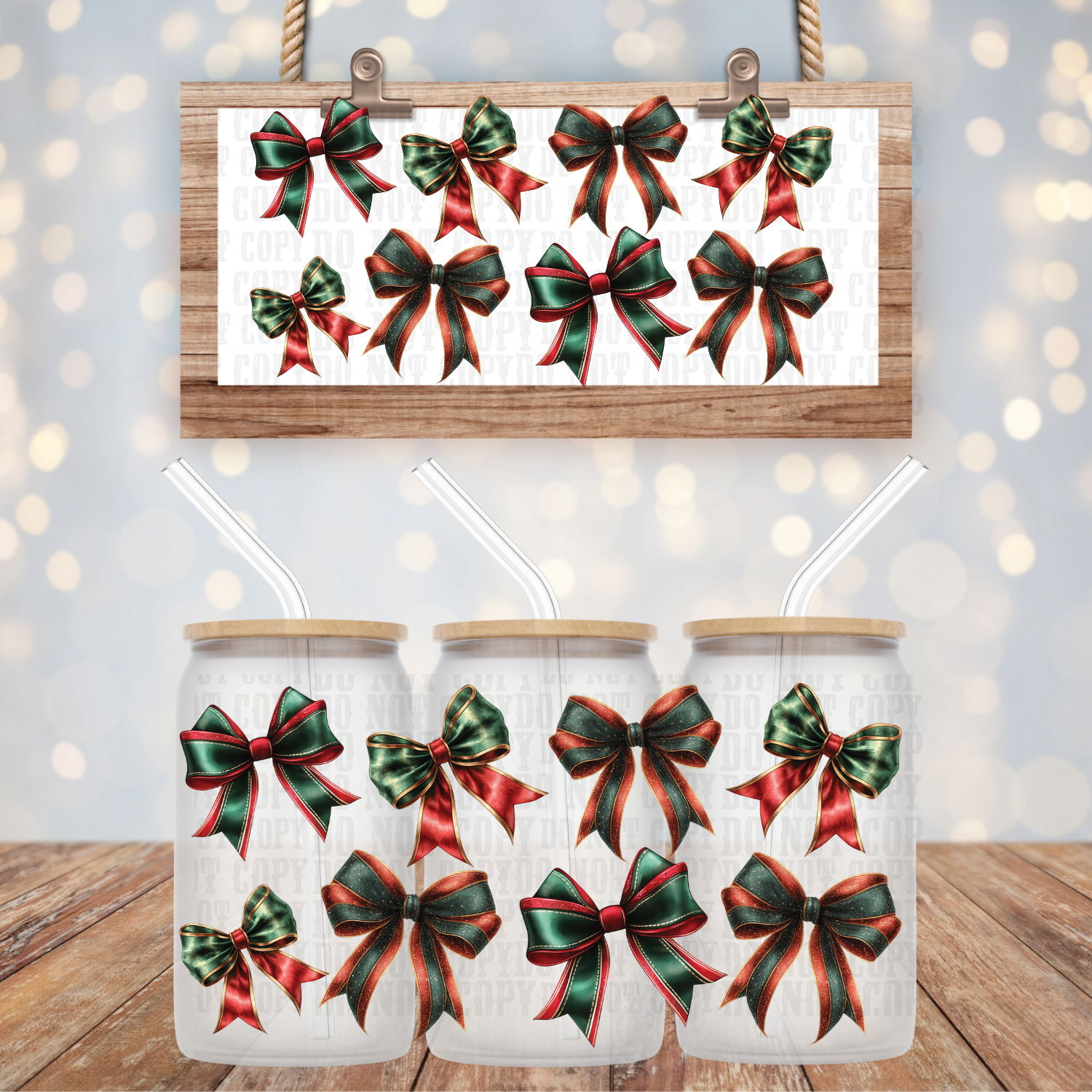 COQUETTE CHRISTMAS BOWS UV DTF CUP WRAP