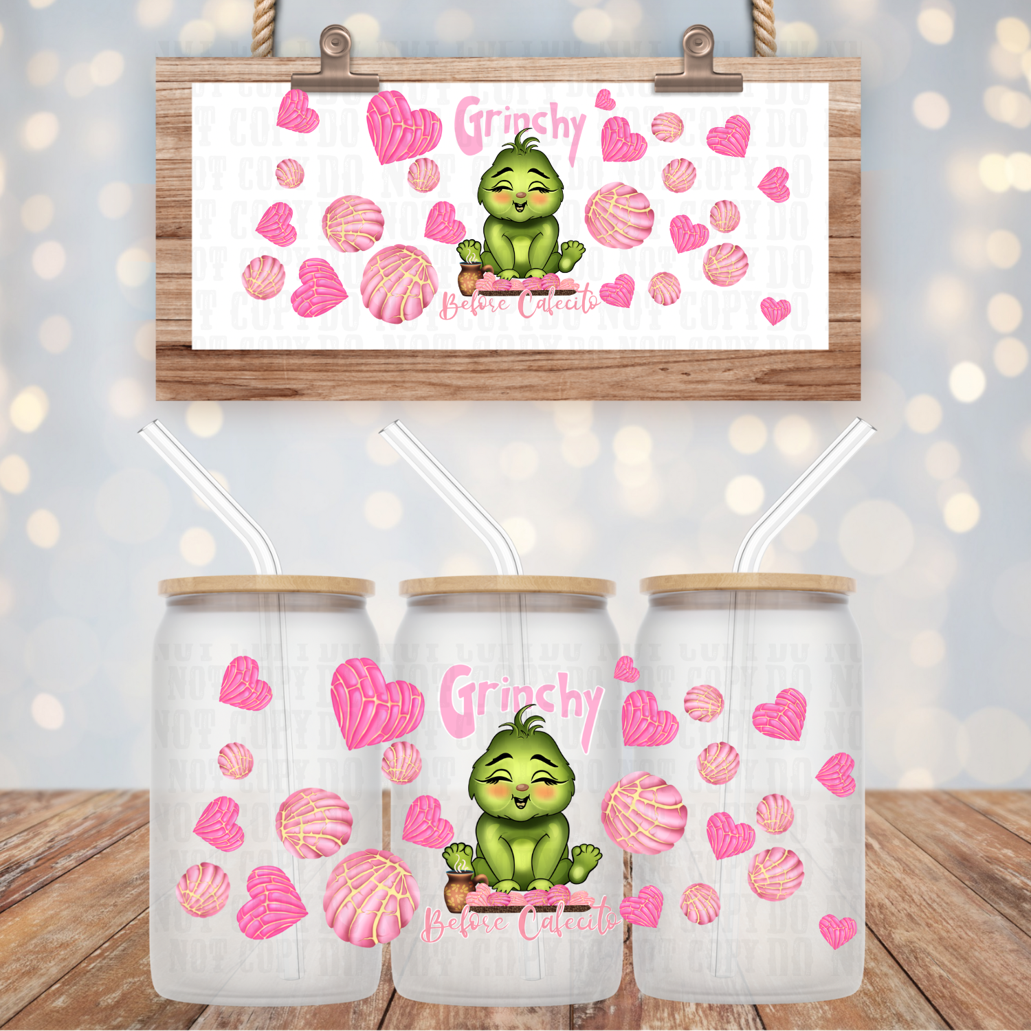 GRUMPY BEFORE CAFECITO PINK UV DTF CUP WRAP