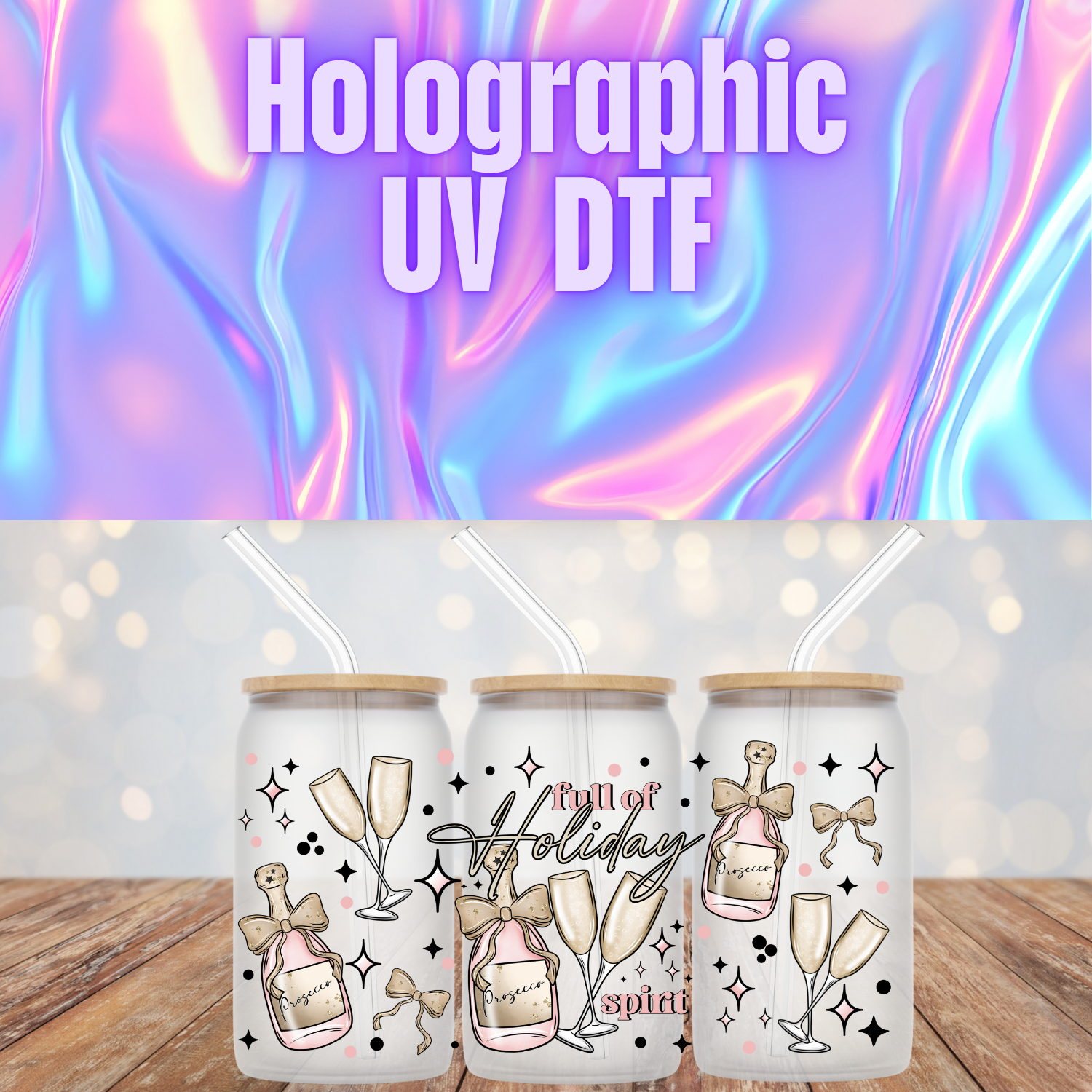 HOLOGRAPHIC FULL OF HOLIDAY SPIRIT UV DTF CUP WRAP