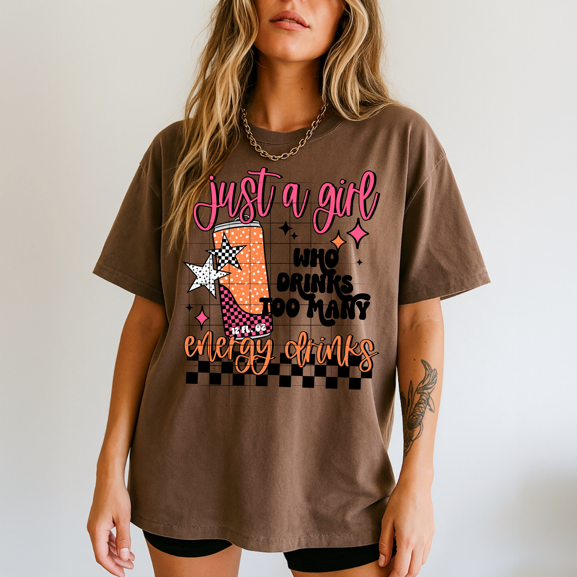 JUST A GIRL TOO MANY ENERGY DRINKS DTF