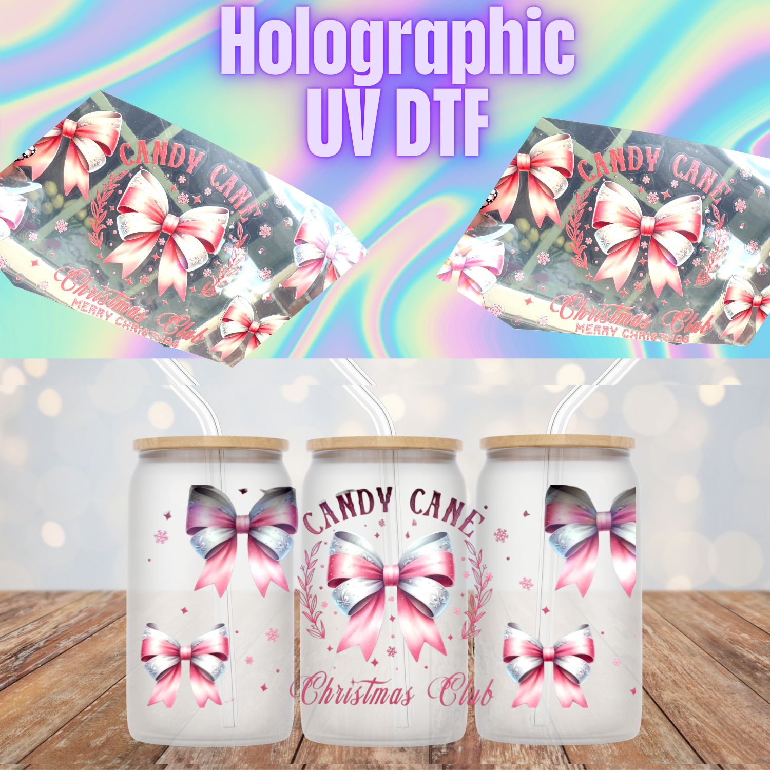 HOLOGRAPHIC CANDY CANE UV DTF CUP WRAP