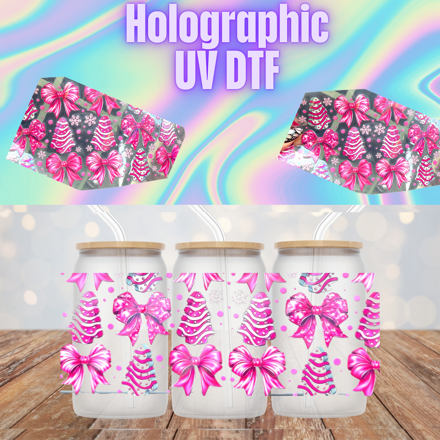 HOLOGRAPHIC PINK TREES AND SNACKS UV DTF CUP WRAP