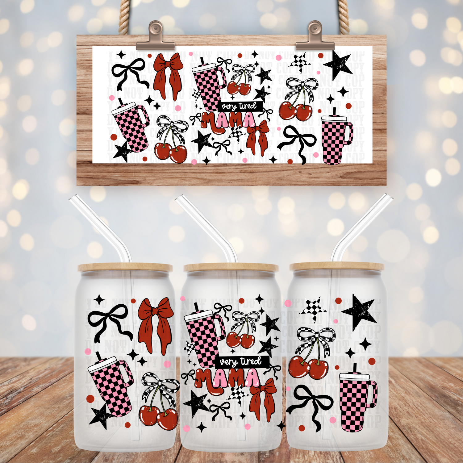 COQUETTE CHERRY VERY TIRED MAMA UV DTF CUP WRAP